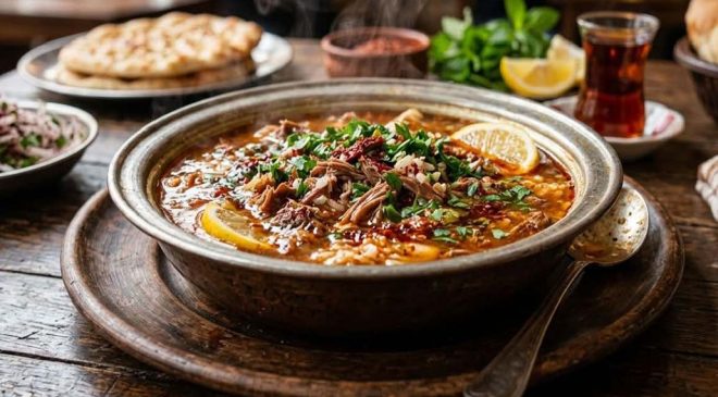 Servis: Beyran geleneksel olarak çok sıcak, hatta “kaynar” içilir. Servis ederken üzerine ekstra pul biber ve bol limon sıkmayı ihmal etmeyin.