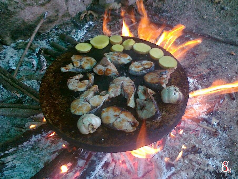 Piknik alanında veya bahçenizde ateşi yaktıktan sonra granit taşın ateşin üstünde ısınmasını sağlıyoruz. Isınan granit taşın üzeri yeteri kadar sıvı yağ dökün daha önce tuzladığımız palamutları ısınan granit taşın üzerine diziyoruz. kızarıncaya kadar hareket ettirmiyoruz. Kızaran tarafı değiştiriyoruz. Aynı zamanda sarımsağı ve dilimlenen patatesleri de kızartıyoruz. Nar gibi kızaran palamutları yerken parmağınızı yememeye çalışın.
