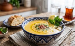 Hem doyurucu hem de o yumuşacık terbiyesiyle içini ısıtacak bir klasik: Terbiyeli Erişte Çorbası. Bulancakajans.com’un “Pratik ve Lezzetli” kategorisi için harika bir seçenek, çünkü evdeki malzemelerle şipşak hazırlanabiliyor.